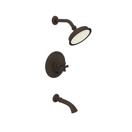 Newport Brass 3-2442BP/03N Polished Brass Uncoated SUTTON Single Handle Tub and Shower Valve Trim with Tub Spout, Showerhead, and Metal Cross Handle from the Sutton Collection 3-2442BP