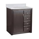 Foremost EUEA3021DR Errigon 30-Inch Bath Vanity with Right Side DrawersErrigon is a handsomely designed vanity collection with modern elements. Smooth, clean surfaces play nicely with the subtle layered effect of the cabinet frame. The design of the vanity is complemented by the deep, rich tones of the java finish, while the brushed nickel hardware mimics the design of the frame, creating a furniture piece of exquisite character