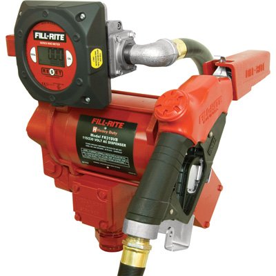 Fill-Rite High Flow Dual-Voltage AC Pump - 115V/230V, 35 GPM, Model# FR319VB The Fill-Rite high flow dual-voltage 115V/230V AC pump is an incredibly fast self-priming transfer pump designed for safe and efficient transfer of diesel fuel, kerosene, mineral spirits, heptane and hexane at up to 35 GPM open discharge. UL listed. U.S.A. Amps: 9.8/4.9, 11.4/5.7, Bypass Valve: Yes, Dimensions L x W x H (in.): 21 x 20 x 18, Discharge (ft.): 60.1, Hose (in. x ft.): 1 x 18, HP: 3/4, Inlet Port (in.): 1 1/4, Max. Suction Lift (ft.): 15.9, Duty Cycle: 30 min., Flow (GPM): 35, Outlet Port (in.): 1, Seal Type: Viton, Self-Priming: Yes, Speed (RPM): 1,725/1,425, Max. Total Head (ft.): 60.1, Nozzle Type: Automatic 30GPM, Volts: 115/230, Watts: 50/60 | Fill-Rite High Flow Dual-Voltage AC Pump - 115V/230V, 35 GPM, Model# FR319VB