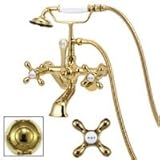 Elizabethan Classics Tub Filler with Handshower EC TW34 PBTub Filler with HandshowerTub-wall mount or mount on ECFSS freestanding supplies3 3/8" to 12 1/2" Adjustable CentersCeramic Disc CartridgeIncludes adjustable swivel arm connectors Requires single or double offset or freestanding suppliesRequires ECSSL Striaght Bath SuppliesShown in Chrome with Metal Cross Handles