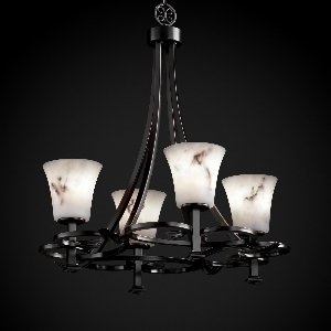 FeaturesGlass: Faux Alabaster Resin Justice Design FAL-8560-50-MBLK Arcadia 4-Uplight Chandelier?