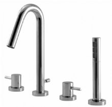 Aqua Brass 4 Piece Deckmount Tub Filler W/ Handshower X7518X1073pc Polished Chrome