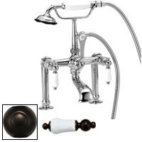 Elizabethan Classics EC RM02 ORB Elizabethan Tub Filler with Handshower - 6" Risers?Tub Rim Mount Only7" CentersCeramic Disc CartridgeCode Approved SpoutRequires ECSSL Straight Bath SuppliesShown in Chrome with Plain Porcelain Lever Handles