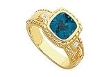 Genuine London Blue Topaz and Diamond Ring : 14K Yellow Gold - 2.05 CT TGW Size 5.5