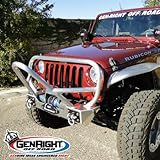 | ✚✚✚ Front Aluminum Winch Bumper With Boulder Series Stinger For 2007-11 Jeep Wrangler JK Gen-Right Front Aluminum Winch Bumper With Boulder Series Stinger For 2007-11 Jeep Wrangler JK - This is the all new Front Bumper for the Jeep JK from GenRight Off Road! - We call this model our "Boulder Series" front bumper for Jeep Wrangler JK. - Our high quality, high clearance Stubby type front bumper with a low version of our front stinger which is directly welded on. It is perfect for protecting the front of your Jeep while out on the trail. The low profile design incorporates the winch mount to keep the winch lower than most other bumpers to allow for better air flow to the radiator. - FEATURES Include: **Fits the 2 door and 4 door Jeep JK. **Compact design fits tight to the frame and wraps around each side. **Works with Antirock type sway bars (or the factory sway bar). **8 bolt mounting fits tight up against the frame for maximum approach angle. **Formed from lightweight 3/16" thick Aluminum alloy. **Includes two steel tow points (D-ring shackles are extra REC-2100). **High stinger bar is to protect the winch and prevent forward roll overs. **Grille bar is to protect the hood and radiator in the event of a roll over. **Winch mount "tray" is sunken down into bumper for better air flow to the radiatorNOTES: **This product is un-painted.