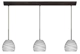 Light Bulb:(3)40w T4 G9 120v Halogen, Glass:Cocoon, Finish:Bronze Achieve a sophisticated look ideal for island or bar applications with this three light pendant fixture. The ceiling canopy permits offset junction box installations. Handcrafted European glass 10' Clear-coated SVT cords Suitable for sloped ceilings Dimmable with standard incandescent dimmer Note: Halogen bulb(s) are included; incandescent bulb(s) are not.