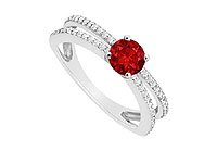 Ruby and Diamond Engagement Ring : 14K White Gold - 0.75 CT TGW Size 5.5