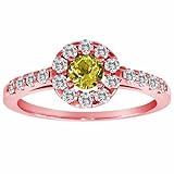 10K Rose Gold Halo Round Lemon Quartz and Diamond Ring (1 cttw, H-I, SI) Size 7This dazzling sparkling timeless ring is classic and can be used as an engagement ring, anniversary ring, bridal ring, promise ring, proposal ring, fashion ring, wedding ring, cocktail ring and also to represent eternal love between you and that special someone. This 10K rose gold diamond ring is prong set with 18 round white diamonds with a total carat weight of 0.54 carats and 1 round Lemon Quartz gemstone with a total carat weight of 0.25 carats. The center gemstone measures approximately 3.00 mm in diameter. The total carat weight of the entire ring is approximately 1 carat. The diamonds are H-I color and SI-I2 clarity. The ring band measures approximately 1.90 mm wide and 1.50 mm thick. This is DivaDiamonds item number S1144LQR.