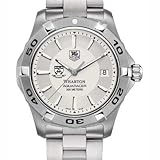 | ✚✚✚ Wharton Men's TAG Heuer Steel Aquaracer Wharton Men's TAG Heuer Steel Aquaracer watch with University of Pennsylvania shield in black; "Wharton" is written underneath. Brushed steel bracelet with a double security clasp. Case stamped from a block solid steel (39mm diameter). Unidirectional rotating bezel. Luminescent hands and indexes for optimum readability. Screw-in crown and caseback for water resistance to 300 meters. Swiss made Quartz movement. Scratch-resistant sapphire crystal. Unique TAG Heuer presentation box. TAG Heuer international two-year warranty.