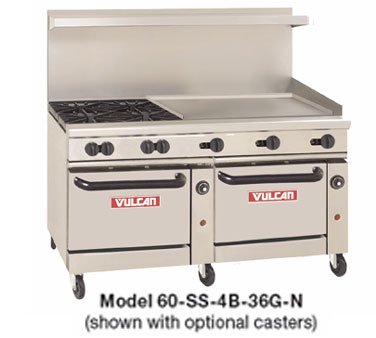 Vulcan 60-SS-4B-36G 60" Gas "Endurance" Restaurant Range With 4 Open Burners, 36" Manual Control Griddle And (2) Large Standard Ovens