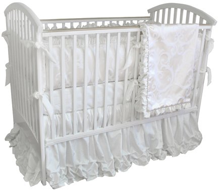 Arabesque 4 Piece Crib Bedding Set?This popular unisex crib set includes a bumper, dust ruffle, blanket and sheet